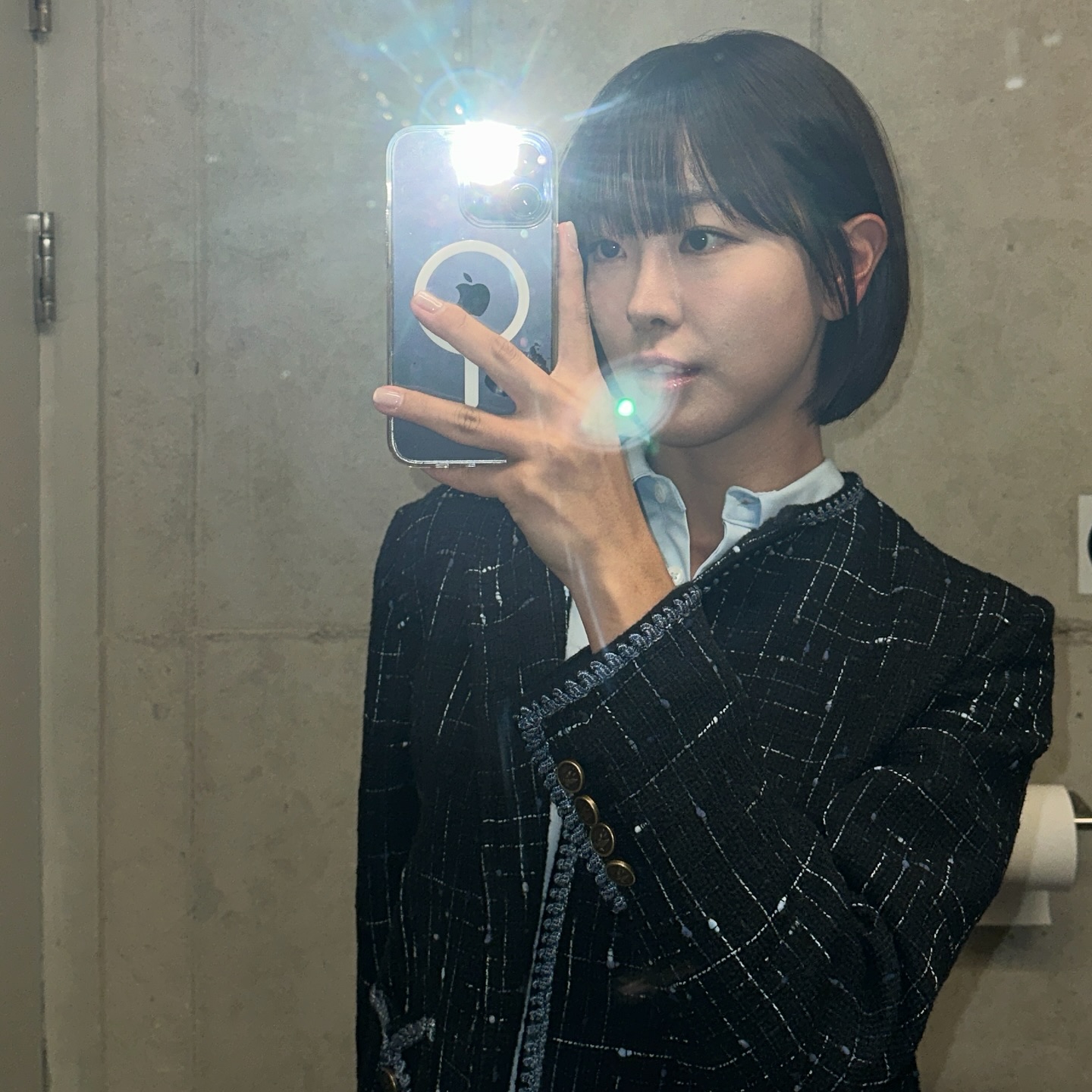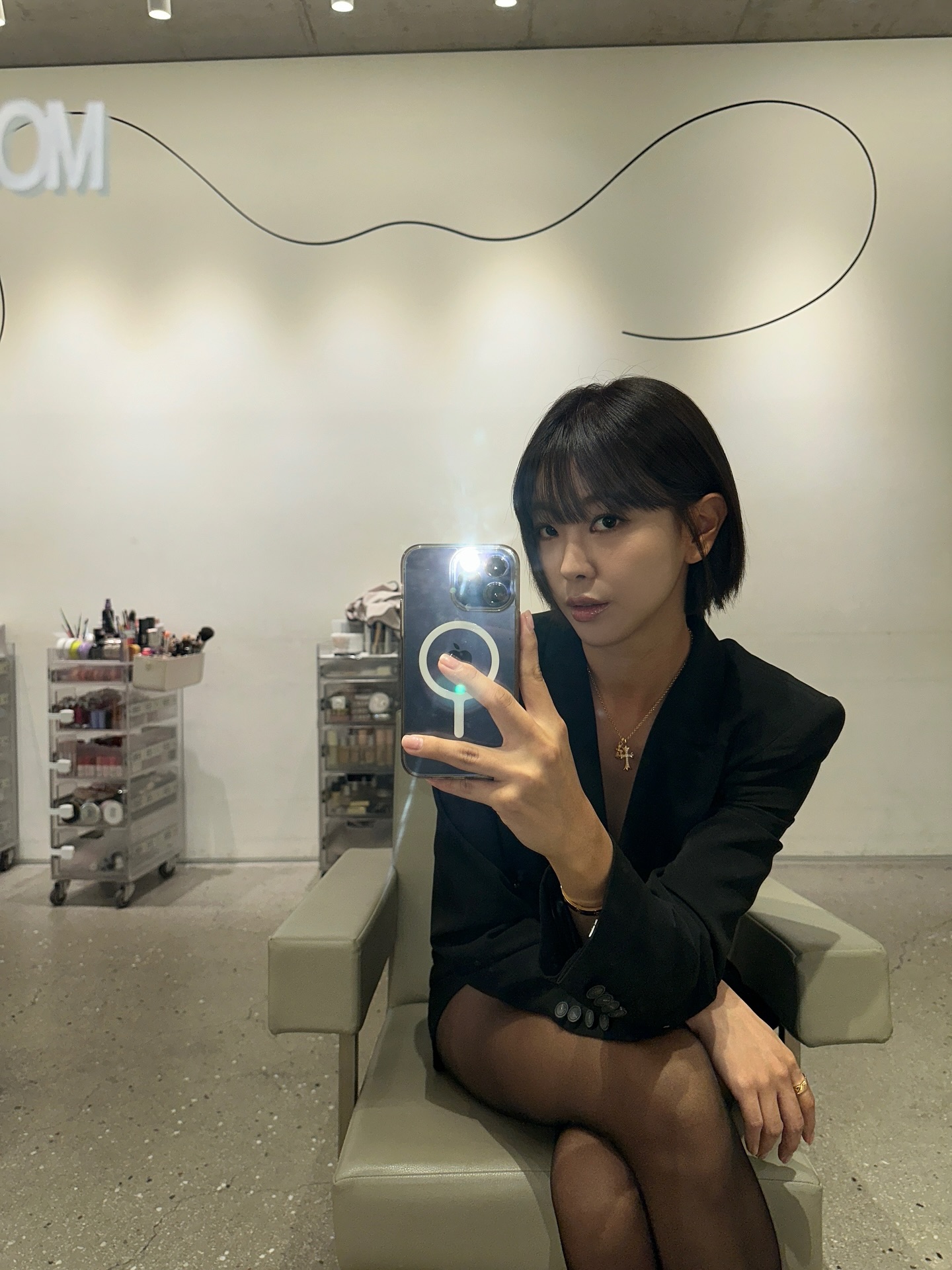 세련된 숏단발 스타일링도 화제가 되었습니다.