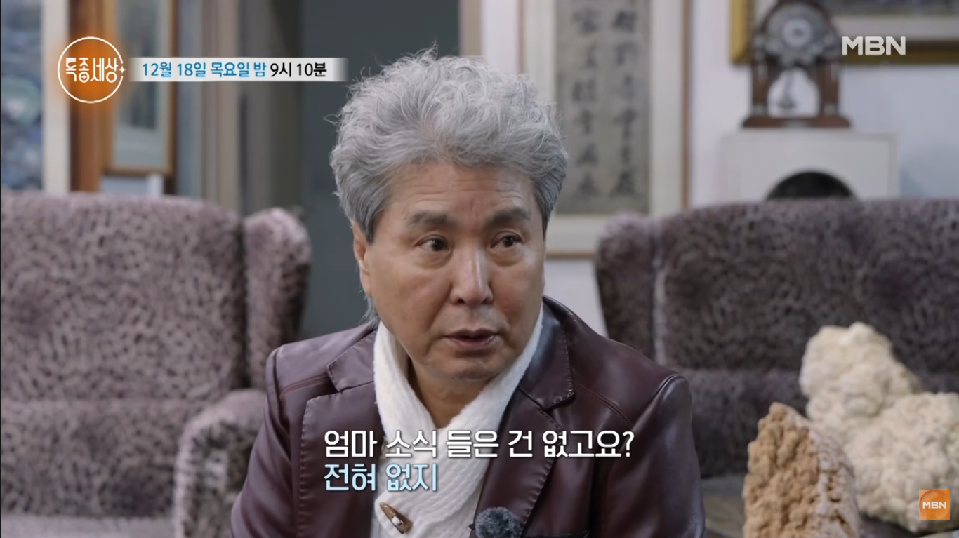 12월 18일 방송되는 MBN '특종세상'에서 배동진은 가슴 깊이 묻어둔 이야기를 꺼냅니다. 배동진 나이 71세, 이제 그에게 남은 마지막 소원은 단 하나, 바로 생모를 만나는 것입니다.