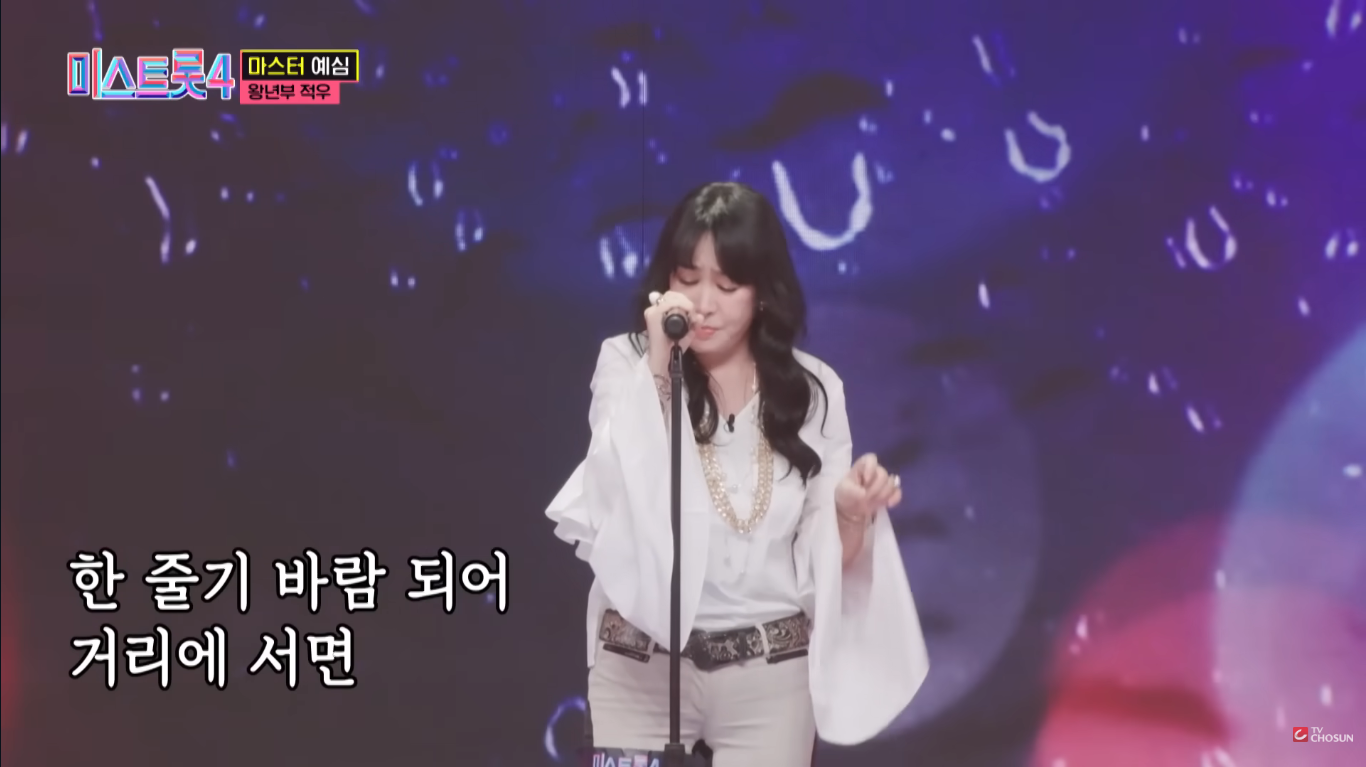 미스트롯4 예심 무대에서 적우는 창밖의 여자를 선곡했습니다.